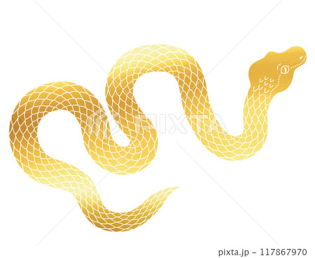 巳年、年賀素材、ヘビのシルエットイラスト_金色