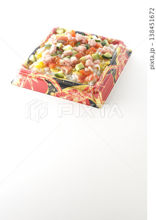 牡蠣入りちらし寿司を白背景で撮影