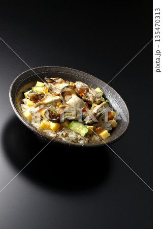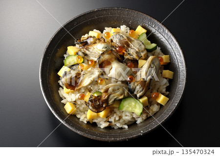牡蠣入りちらし寿司を黒背景で撮影