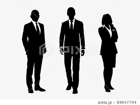 Business people group silhouettes pose on white background, flat line vector and illustration.