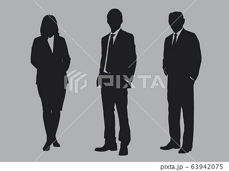 Business people group silhouettes pose on grey colour background, flat line vector and illustration.
