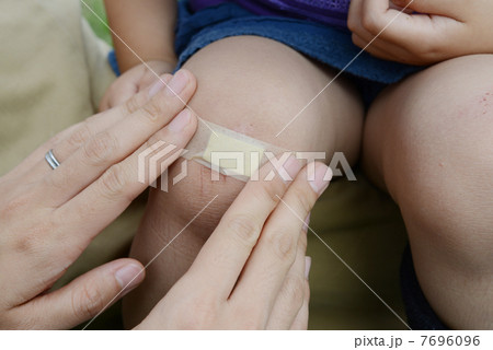 絆創膏 (カットバン バンドエイド 人物 子供 コピースペース 怪我 事故 痛い 辛い 女児 ケガ)