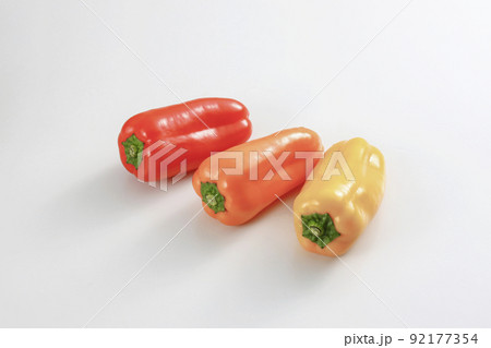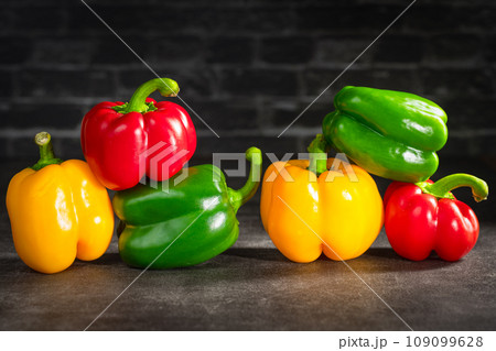 精緻CG パプリカ、黄パプリカ、緑パプリカ、まるで信号機のよう。まるで本物のように新鮮でおいしそう。
