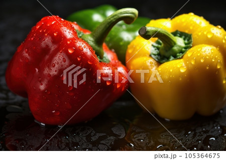 red and green sweet bell peppers on a purple background, fresh juicy vegetables on a colored background, selective focus, soft focus, close-up