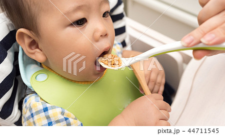 ひきわり納豆にタレとカラシを入れたイメージ (写真素材)