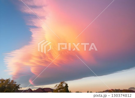 Sunset Cloud Iridescence Rainbow Tones in a Delicate Cirrus Cloud at Dusk