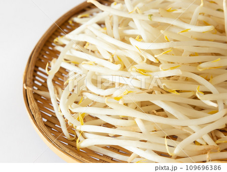 竹ザルに盛られたもやし 野菜 物価の優等生