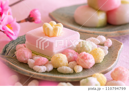 ひなあられと菱餅 雛祭りの食べ物イメージ素材