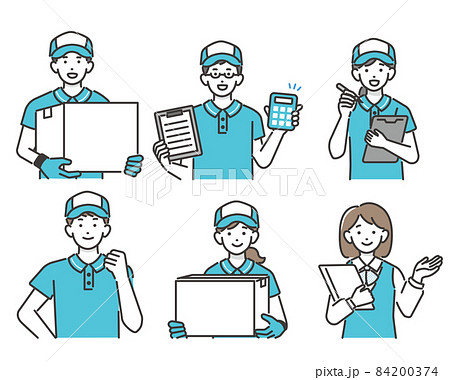 バインダーや段ボールを持つ男性の引っ越し業者のベクターイラスト素材/引越し/業者/段ボール/上半身