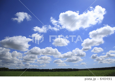 空の写真素材 空と雲 青い空と白い雲 コピースペース テキストスペース 普通の雲 積雲 層積雲?