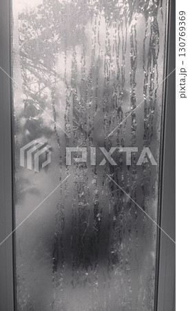 Foggy window in an abstract style in black and white representing a somber and mysterious mood
