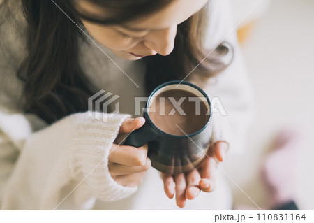 コーヒー・ココアを飲む女性