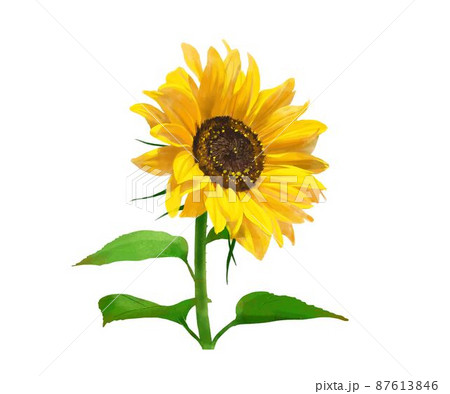 夏の美しいひまわりと葉っぱの白バックイラスト素材