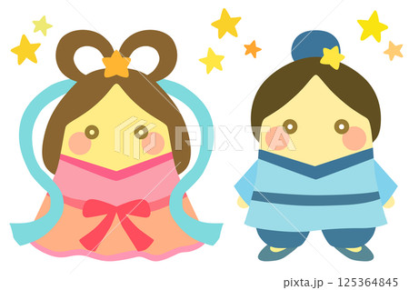 かわいい織姫と彦星のイラストセット 七夕 ベクター素材