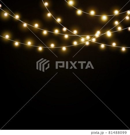 Light background garlands. Christmas lights realistic, glowing led neon lamps. luminous bulbs, holiday electric illuminating. Banners, posters or greeting card isolated vector elements