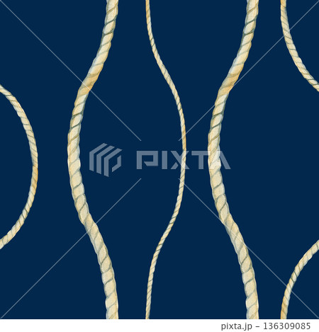 Hand-drawn watercolor seamless pattern featuring vertical wavy jute ropes. Nautical repeating background for marine-themed textiles, wallpaper, and rustic coastal decor. Detailed twisted cord