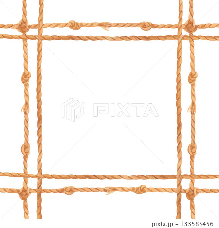 Jute rope frame square. Hand drawn watercolor illustration isolated on a white background . Copy space for text. Template for postcard, scrapbooking