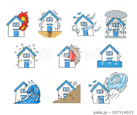 災害による住宅被害イラストのセット