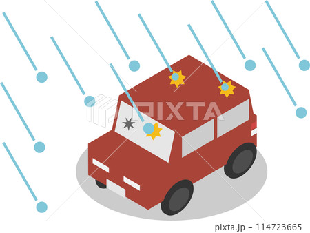 アイソメトリックな雹の被害を受けた自動車のイメージ素材