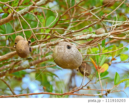 不揃いな形の虫こぶがと実がついたマンサク科のイスノキ