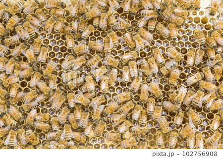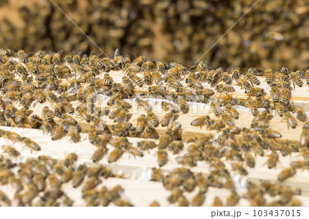 養蜂イメージ 巣枠に沢山ついたミツバチ