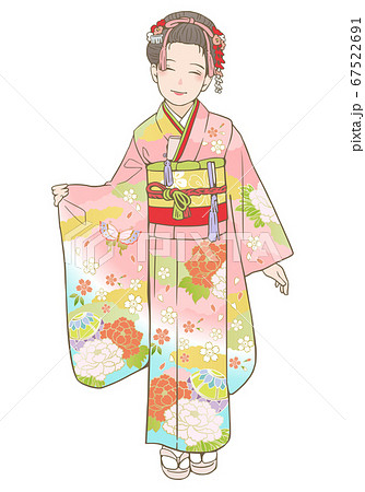 七五三着物ベクターイラスト(7歳女児)
