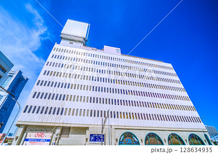 日本の横浜都市景観 桜木町駅前の複合施設「桜木町ぴおシティ」などを望む
