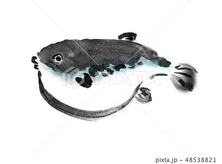 生物のイラスト、魚・魚介類、和食、ふぐ、定番料理、ふくれる、墨絵、白身、ふくらむ、海の幸、シーフード