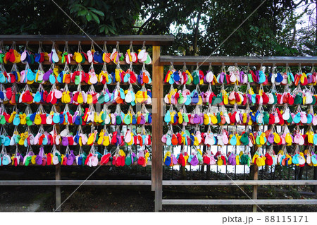 【埼玉】冬の大宮・氷川神社 境内の色とりどりのふくろ絵馬
