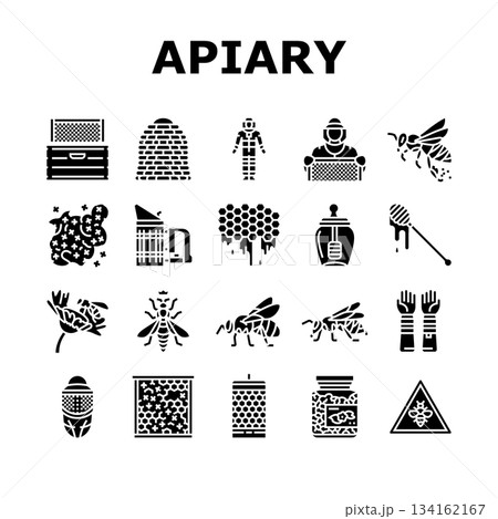 apiary beekeeping bees icons set vector