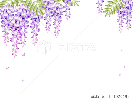 満開の藤棚のイラスト【手描き水彩画】 白バック 透過背景 コピースペース コピースペースあり