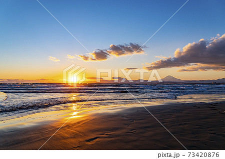 【神奈川県】江ノ島 片瀬西浜からの美しい夕景と富士山