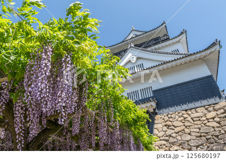 唐津城の見頃を迎えた美しい藤棚(佐賀県唐津市)