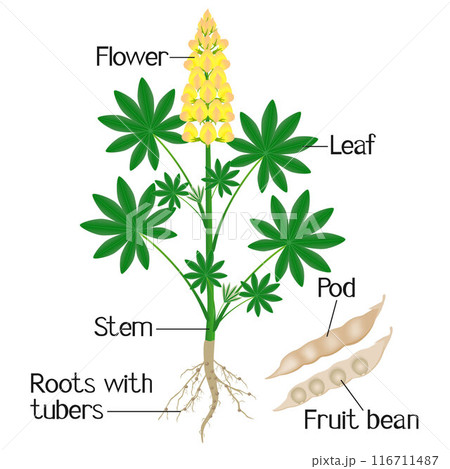 Yellow and pink lupine plant. Summer garden or meadow flower vector illustration