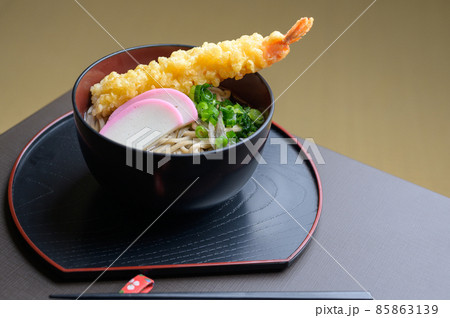 年越しそばのイメージカット写真|海老天・かまぼこ・ねぎ