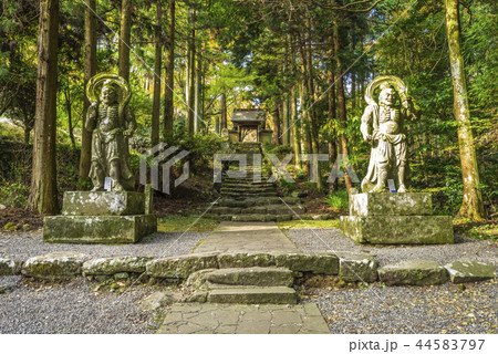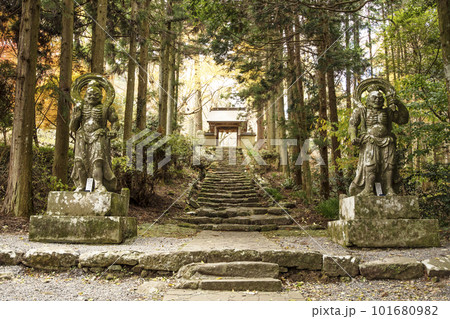 両子寺と仁王像 国東半島の古寺 木々に囲まれたお寺の参道 大分観光スポット パワースポット