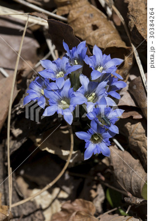 落葉をかき分け可憐な花をつけるフデリンドウ
