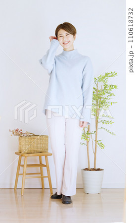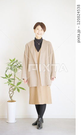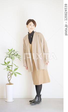 女性秋服冬服のファッションコーディネート全身(縦向き)