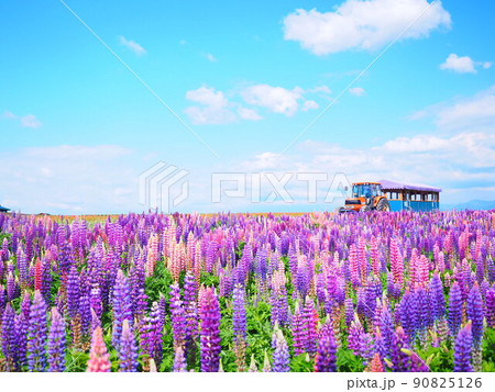北海道の絶景 フラワーランドかみふらの ルピナス畑とトラクターバス