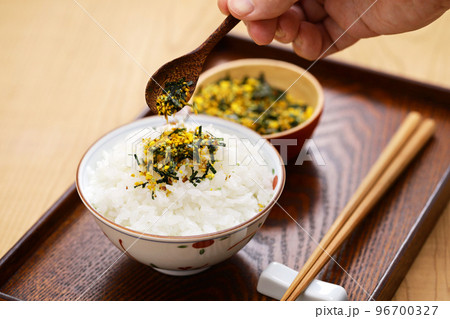 ふりかけをかけたご飯 たまごのふりかけご飯 ご飯の友 ご飯のお供 食文化 イメージ素材
