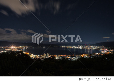 長野県 立石公園から眺める諏訪湖の夜景は美しい