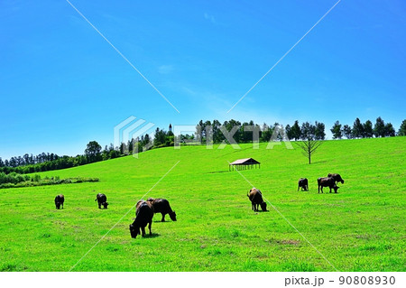 爽やかな北海道 美瑛の丘にある牧場