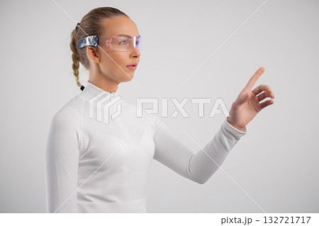 Futuristic Woman Using Smart Glasses