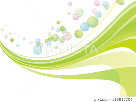 水彩風 緑のラインと水玉ふわふわ1