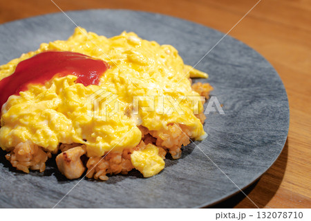 ふわとろ卵がのったケチャップライスのオムライス夕食