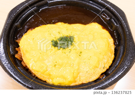 美味しい半熟卵オムライス、ビーフシチューソースかけ