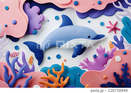 イルカと珊瑚のファンタジーイラスト-1