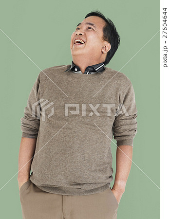 Asian Man Lean Back Laughing Concept