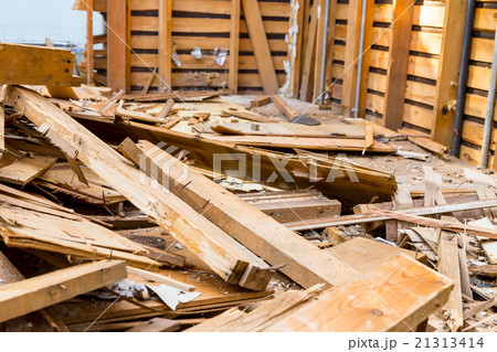 床板 土台敷き 住宅解体業者 家を壊す 半壊 建築物解体作業 木材 廃材 ぶっ壊す 日本建築
