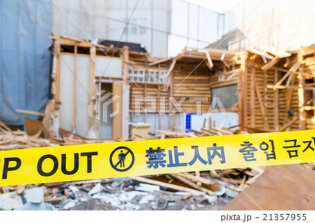 立入禁止 立ち入り禁止 住宅解体業者 家を壊す 全壊 建築物解体作業 木材 廃材 壊す 日本建築